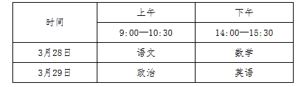 文化考试由教育部教育考试院组织命题和印制试卷,考生高考报名所在地省级招生考试机构负责试卷(含答题卡)接收和组织实施。文化考试科目为语文、数学、政治、英语四科,每科满分为150分,四科满分为600分,使用国家通用语言文字作答。具体考试时间为: